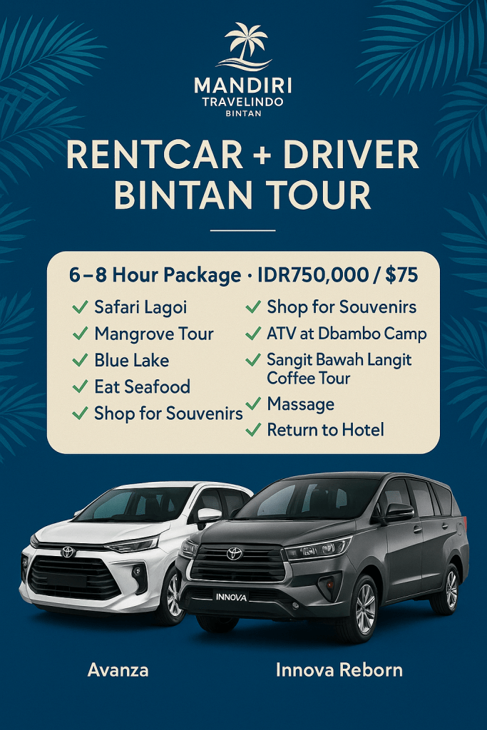 Kami juga menyediakan paket tour lokal untuk Anda yang ingin menjelajahi keindahan Bintan lebih dekat